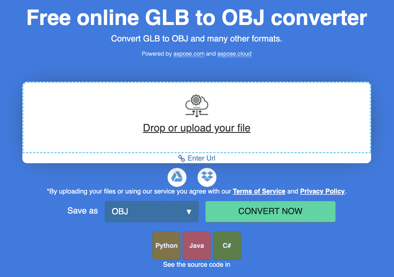 Przyjazny dla użytkownika interfejs: zapewnia intuicyjny i łatwy w obsłudze interfejs użytkownika, który pozwala użytkownikom przesyłać pliki GLB i inicjować proces konwersji bez żadnej wiedzy technicznej.