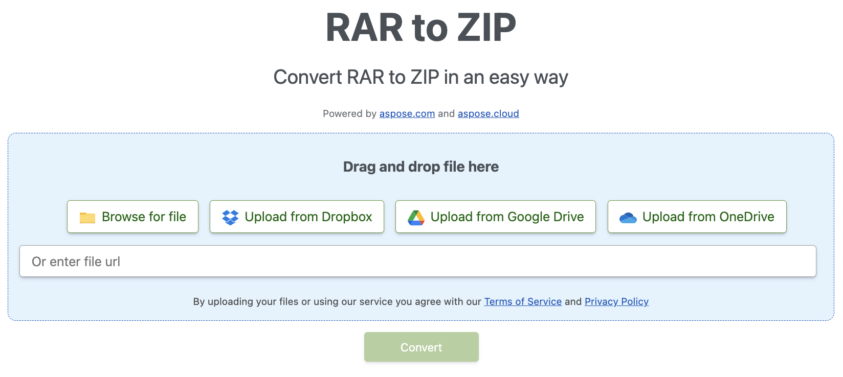- Her şeyden önce, bir internet tarayıcısı kullanarak çevrimiçi RAR’dan ZIP’e dönüştürücüyü yükleyin.